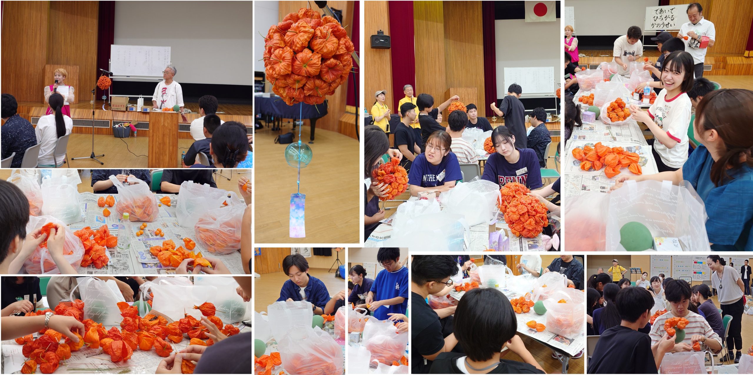 最終日は、金沢兼六ライオンズクラブさんにお越しいただき、「ほおずきの風鈴」を作りました。ボランティアのお兄さんやお姉さんと力を合わせて、楽しそうに作っていました😄